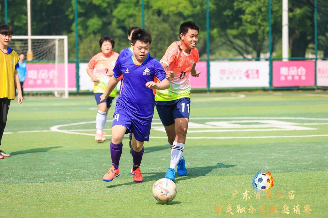 原来,这是由广东省残联、中国残疾人康复协会残疾人体育与健康专业委员会指导,广东省智力残疾人及亲友协会主办,广东省智力残疾人及亲友协会运动康复及特奥工作委员会、广州市心友心智障碍者服务协会承办的广东省第三届特奥融合足球邀请赛,也是专为特奥运动员搭建的舞台。